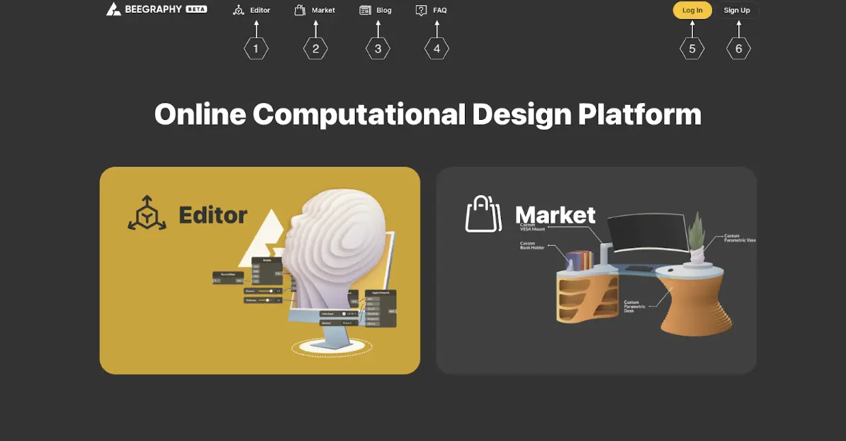 Let’s proceed by registering on the BeeGraphy platform. To access the registration page, click on the Sign Up (6) button. If you’re already registered, click Log In (5) to sign in.