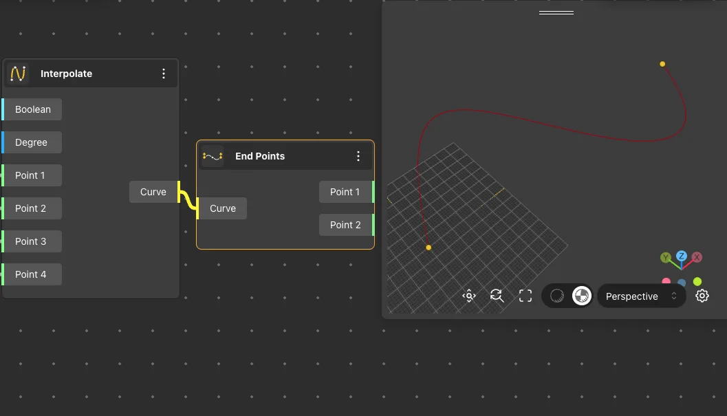 The End Points node returns the start point and end point of the curve received in its input.
