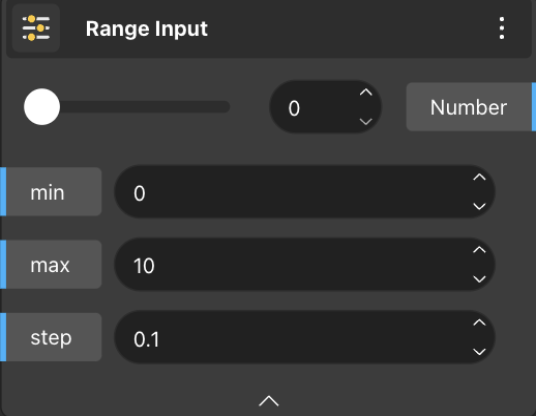 Range Input generates a number within a specified range, allowing us to adjust the step size for changing the number within that range.