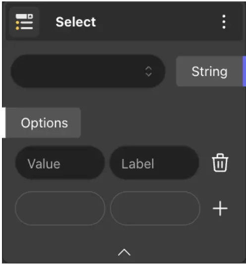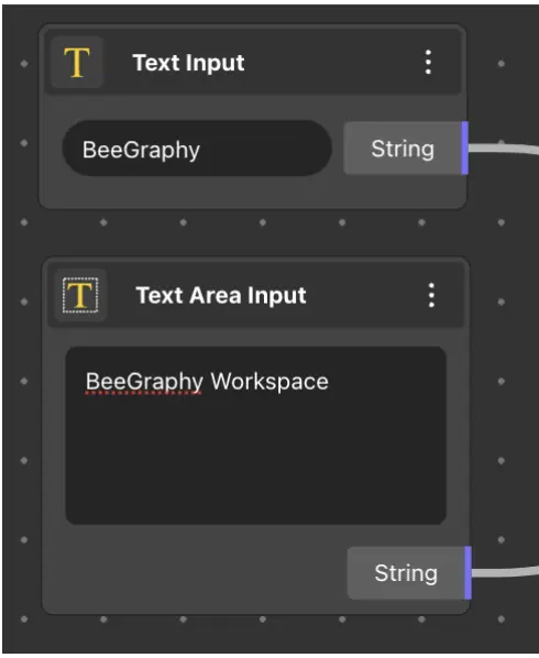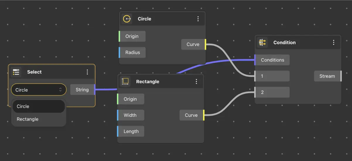 The Select node outputs a variable of type ’string’, enabling us to generate a list of values. Within its input fields, we can enter variable values and names in two columns. Once filled, selecting a name from the dropdown list will return the corresponding value associated with that name.