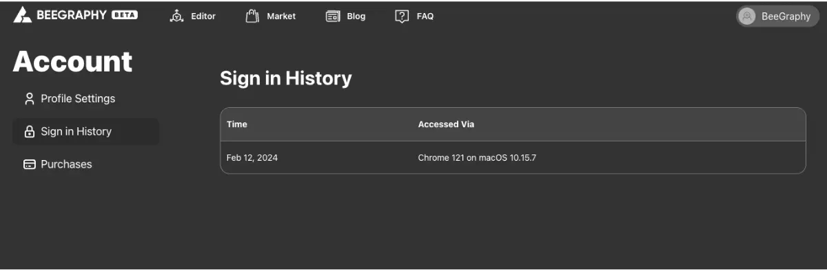 Sign-in History(2) - displaying login history for the personal page.